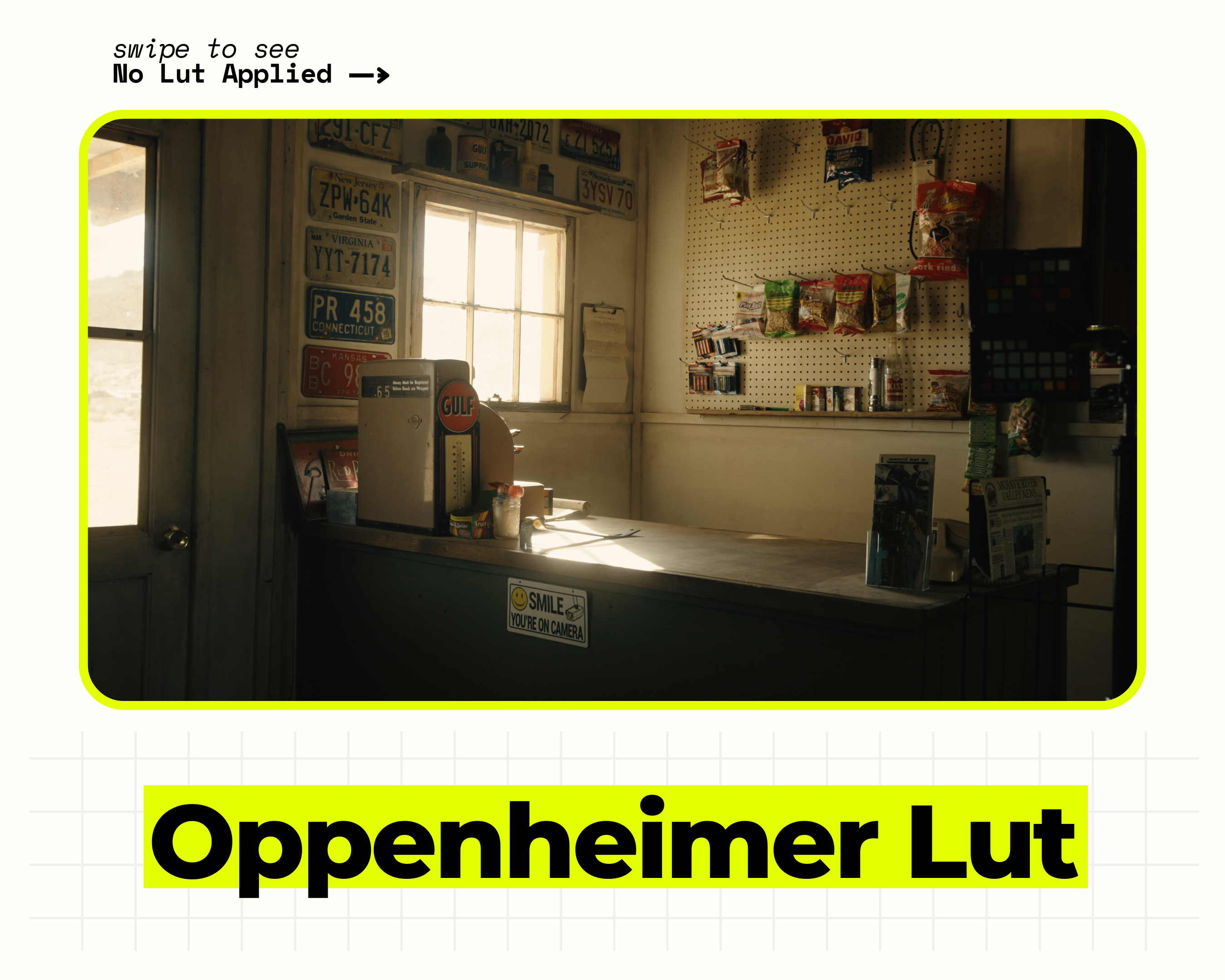 We've included 3 looks that were rebuilt from the colors and tones of Oppenheimer! We found the best results of the creative LUT are when your footage matches these key reference frames (Bright / Day / Interior / Exterior / Soft Key Light / Contrast)