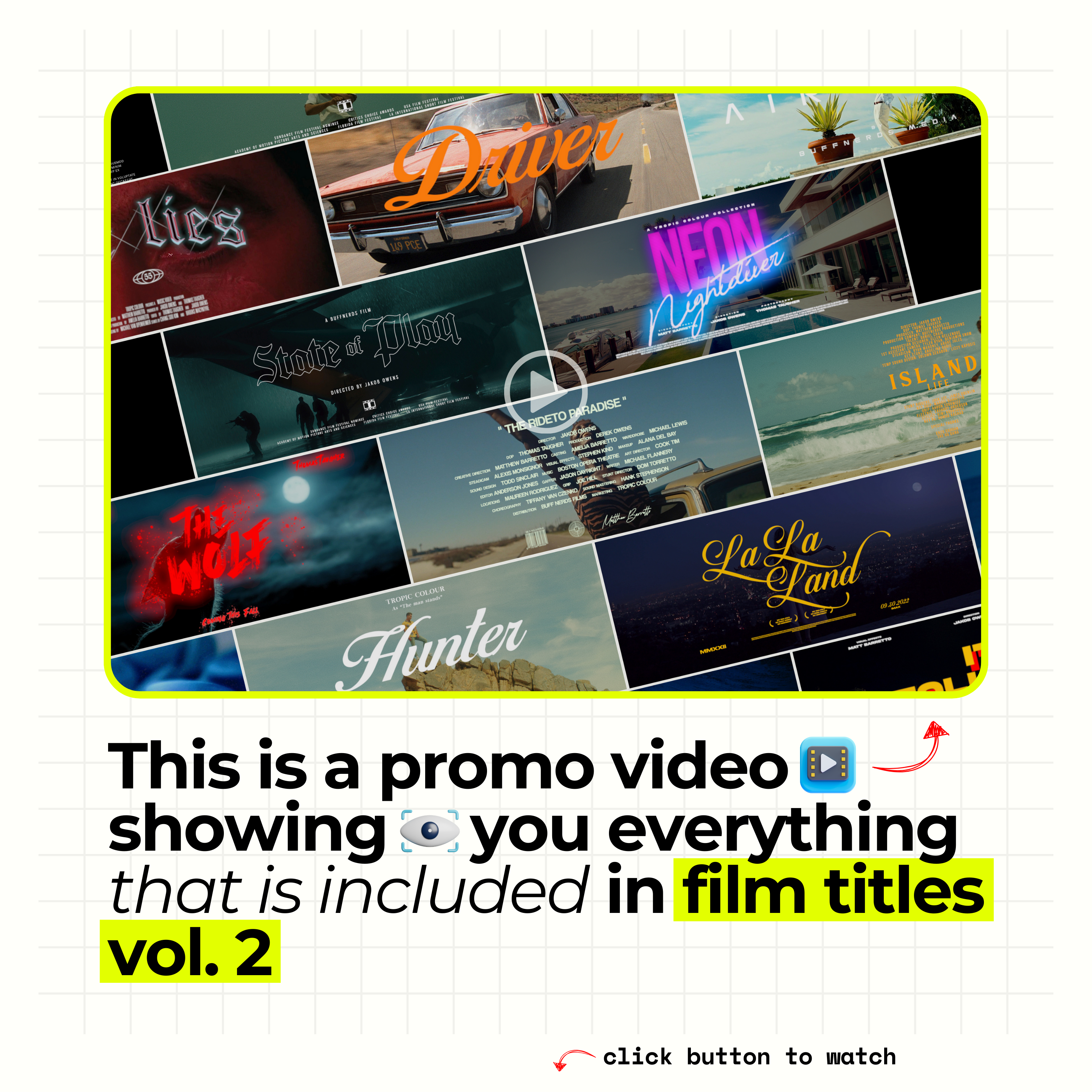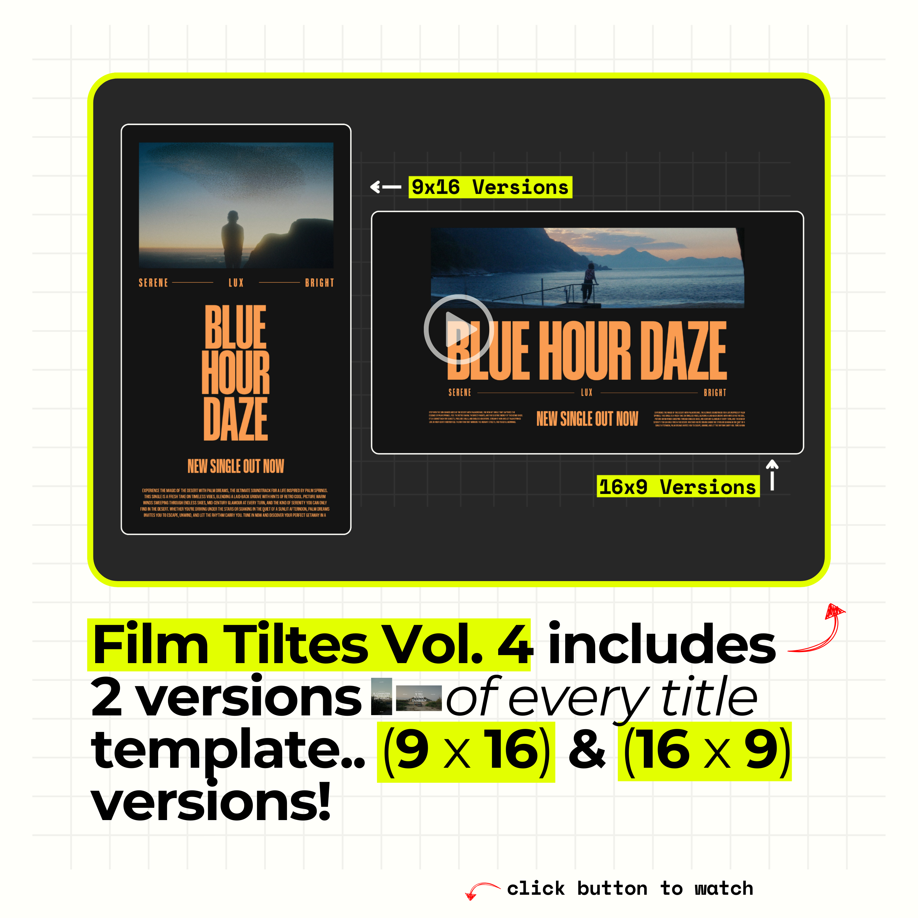 You get everything... Over 100+ titles designs from our best selling title template packs! This is the best way to save & level up your title design! Because Let's face it, the factory default fonts and titles in your editing software aren't that special. Look, we have nothing against Arial, Helvetica, or Papyrus... but sometimes your edit calls for something more elevated!